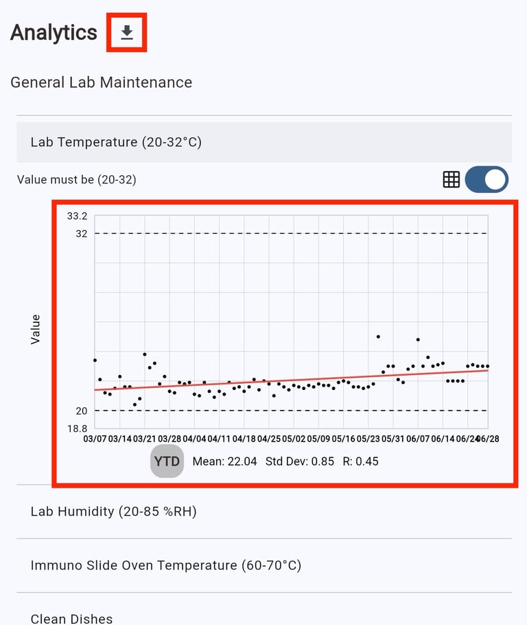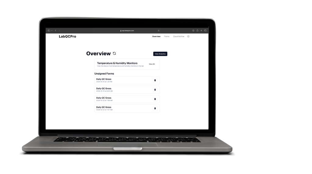 With LabQCPro, you can gather all of your lab's equipment information from past QC forms and use it for comprehensive insights using analytics.